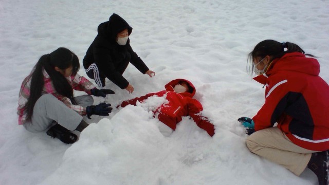 6年生で雪遊びをしました。6年生ならではの大きい雪だるまを作るなど楽しそうに活動していました。
