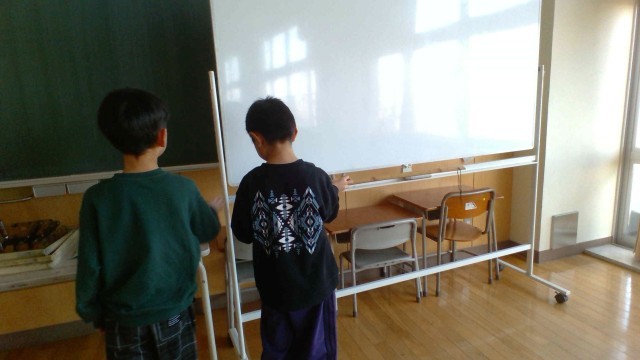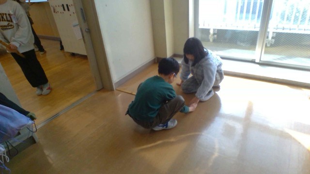 算数科では「長いものの長さをはかろう」の学習をしています。今日は、1mものさしを使って、黒板の幅や廊下の幅を測りました。