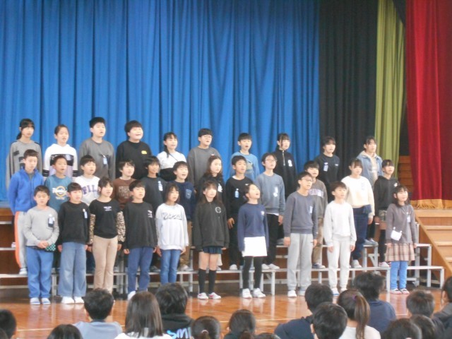 クラス対抗合唱コンクールを行いました。課題曲は、卒業式に歌う「北極星のリレー」です。各クラスが思いをこめて歌いました。それぞれのクラスのよさや色が出る歌声で、一年間の集大成が歌う姿に表れていました。