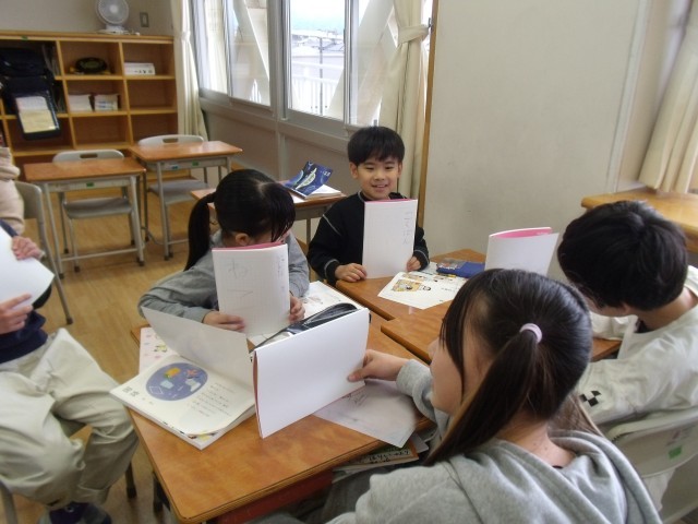 国語の学習が始まりました。友達が考えた秘密の言葉を、グループで会話をしながら引き出す学習をしました。どうしたら秘密の言葉を引き出せるか工夫しながら会話を広げることができました。