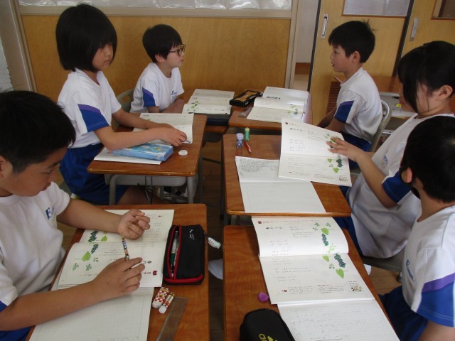 詩の学習をしました。グループで音読の仕方を考え、みんなの前で発表しました。