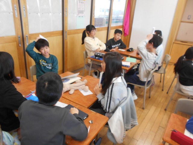 国語科「ひみつの言葉をひきだそう」の学習に取り組みました。グループの友だちが考えている「ひみつの言葉」を、会話を通して引き出そうと、どの子も真剣に言葉を組み立てていました。
