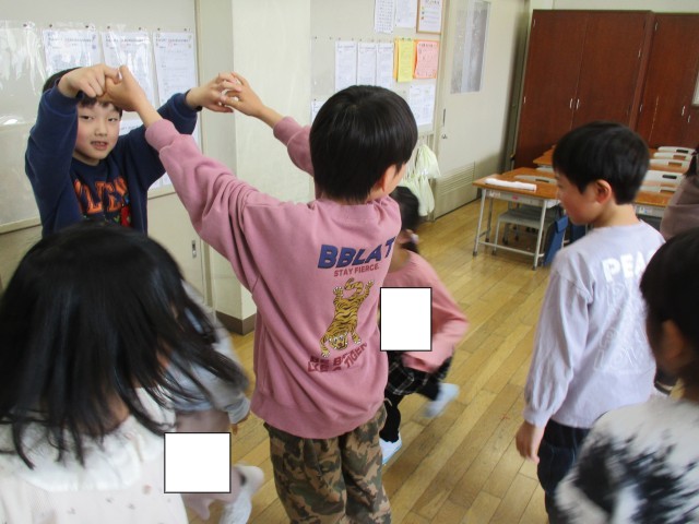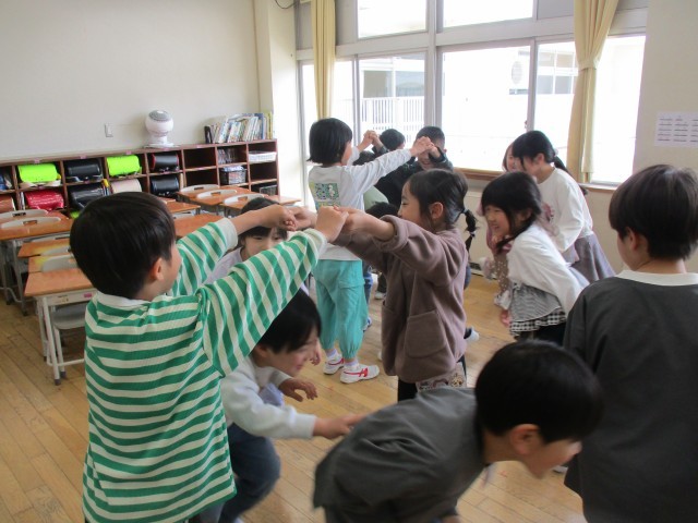 音楽科「音楽でみんなとつながろう」の学習では、「小犬のビンゴ」や「ロンドン橋」の歌を歌いました。