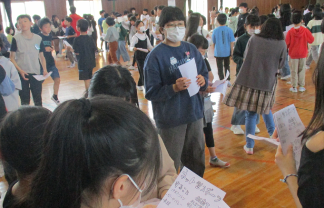 本日、6年生が4・5年生に向けてクラブ活動の勧誘を行いました。