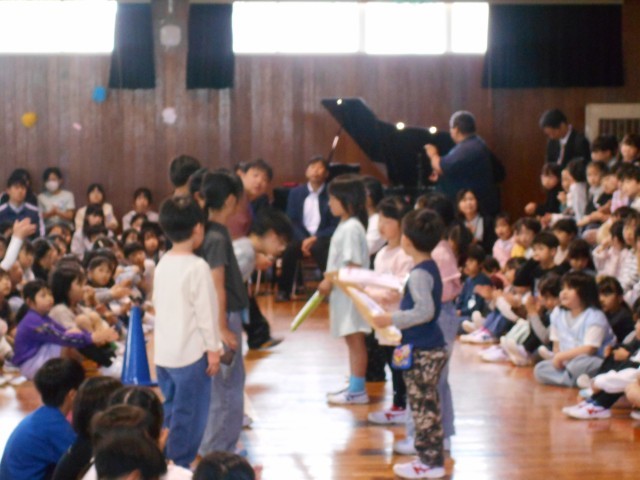 上級生のみんなからたくさんのお祝いをしてもらい、楽しい集会でした。