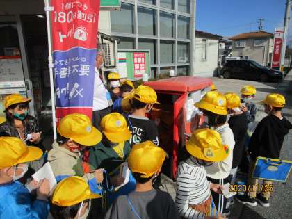 金代郵便局では、局長さんに郵便局の仕事について分かりやすく教えていただきました。