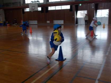 体育の授業で、ボール投げやボール転がしなど、ボールに触れることを楽しんでいます。今日は、ボールを1個、2個、3個と運ぶレースをしました。3個も運ぶのは大変でした。抱えたり、転がしたり、落ちるボールを追いかけたりしながら、工夫して運ぶ子供たちが可愛かったです。