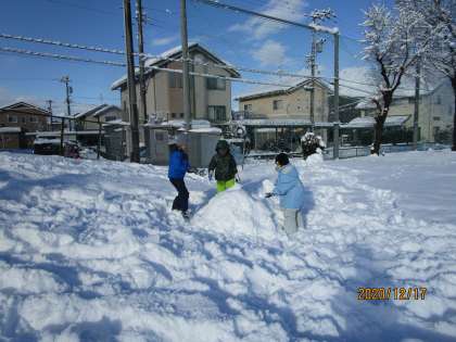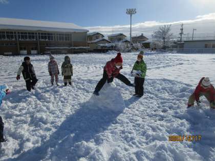 ふかふかの雪を固めたり、丸めたりして、跳び箱やかまくらを作って楽しみました。