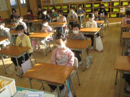 2学期の終業式を行いました。放送での終業式でしたが、静かに校長先生のお話を聞いていました。交通安全、感染予防の2つに気を付けて生活することを約束しました。