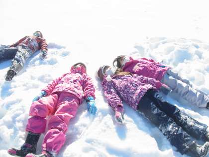グラウンドで雪で遊んだり、氷を見付けたりしました。雪の上で寝て、久しぶりの青空を眺めたり、見付けた氷を運んだりするなど工夫して遊んだ子供たちです。