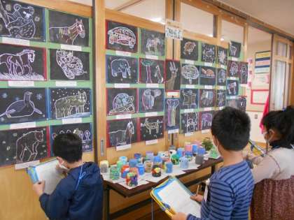 図画工作科で取り組んだ木版画作品の鑑賞をしました。