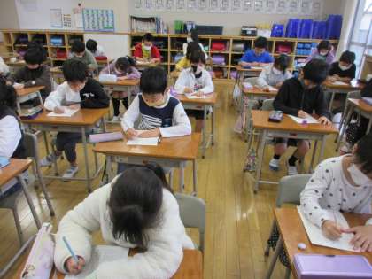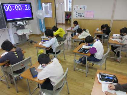 朝学習に真剣に取り組んでいます。今日は、時間を計りながら九九表を書きました。短い時間で解き終わることができるよう、集中する姿が見られました。