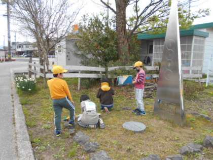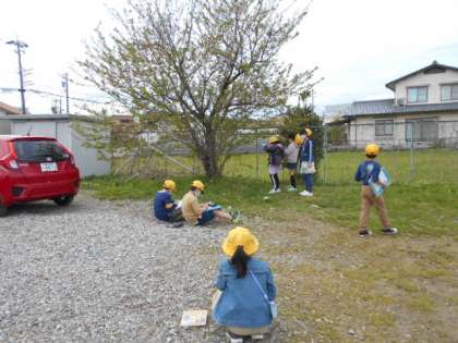 理科「あたたかくなると」の学習では、学校の周りにある植物の様子はどのようになっているのか調べました。