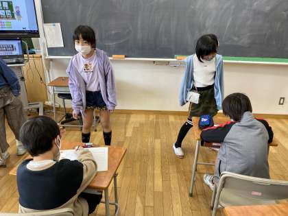 外国語活動「Hello, world!」の学習では、世界の国々のあいさつについて発音練習したり、友達に好きなものを質問してノートに記録したりしました。