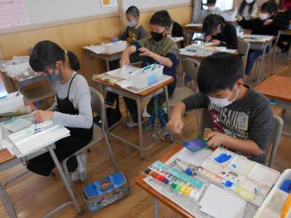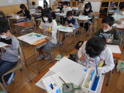 5年生は、自分の「心のもよう」を表そうと、様々な技法を駆使して作品を仕上げました。