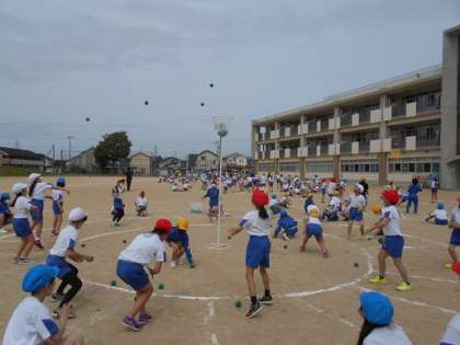 4年生の「かがやきスポーツ集会」では、50m走と玉入れを行います。