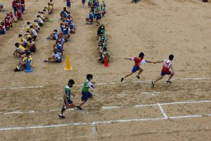 団体競技2種目は、リレーを行いました。一人一人が全力で走り、声を出さないよう仲間を拍手で応援しました。