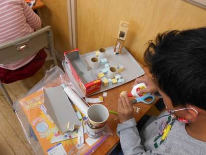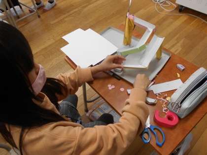 4年生の図画工作科の取組、「コロコロガーレ」の制作が進んでいます。
