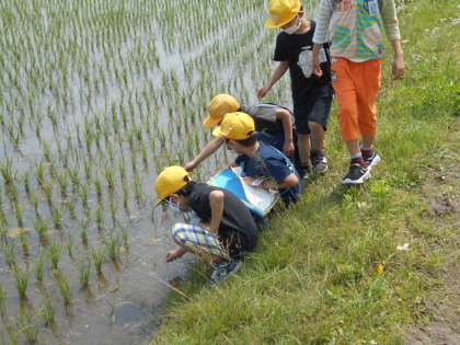 2年生は、町探検に行ってきました。自分の家の近くの公園と比べて遊具で遊んだり、田んぼにおたまじゃくしを見つけたりしました。