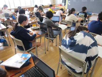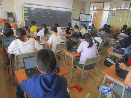 社会科では、歴史の学習が始まりました。パソコンを使い、縄文時代の住居や食べ物、生活の様子を熱心に調べる子供たちの様子が見られました。