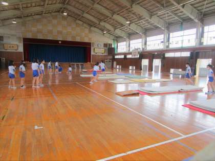 体育科の学習では、立ち幅跳びに挑戦しています。助走、踏み切り、着地の3つのポイントの中で、自分の課題を見付け、記録を伸ばそうと練習に取り組んでいます。