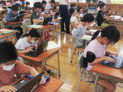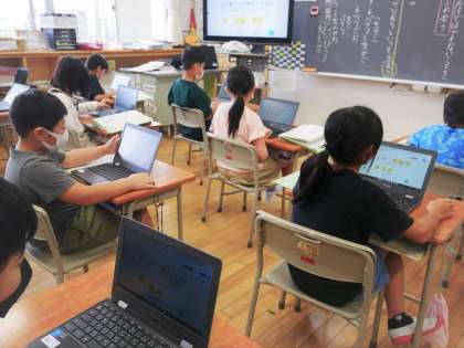 国語科「山小屋で三日間過ごすなら」の学習で、何を持っていくか、自分の考えをクロムブックを使ってまとめる活動を行いました。付箋に持ち物を入力し、何をするために持っていくのかを記しました。