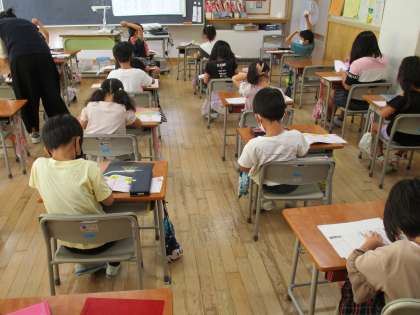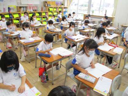 火・水・金曜日の朝活動の時間には、漢字練習や計算練習をしています。今日は、新しい漢字の読み方や書き順を知り、ドリルノートに練習しました。子供たちは、字を書く姿勢や鉛筆の持ち方に気を付けながら集中して取り組みました。