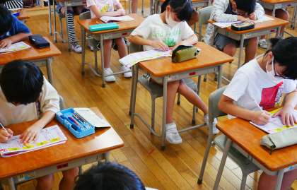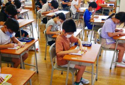 読み方や書き順を確認しながら、漢字の学習をしています。書くときの姿勢や鉛筆の正しい持ち方を意識して、集中して取り組んでいます。