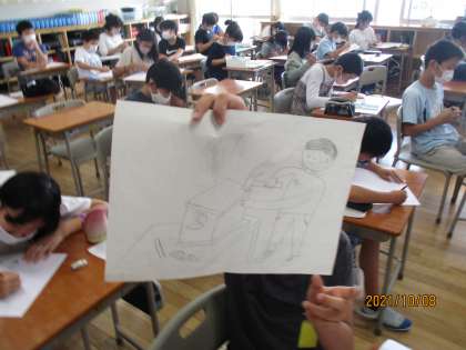 心に残っている思い出の場面を絵にして描いています。水彩の濃淡をうまく使って表現しようと工夫しています。