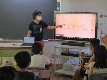 分数と小数の混じった計算をしました。小数を分数に直し、通分してから計算し、答えを約分するという手順に気を付けて、間違いのないように計算しました。互いの解き方を共有しました。