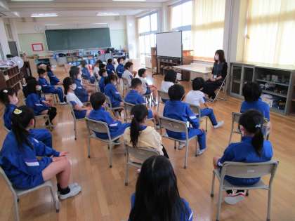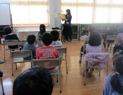 富山市立図書館の司書の方が学校に来られて、本やお話の楽しさを伝えていただきました。