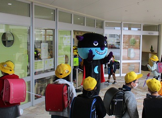 登校した子どもたちは、よふかしおににびっくりしていましたが、元気よく「おはようございます」と挨拶をして、よふかしおにを元気にしていました。