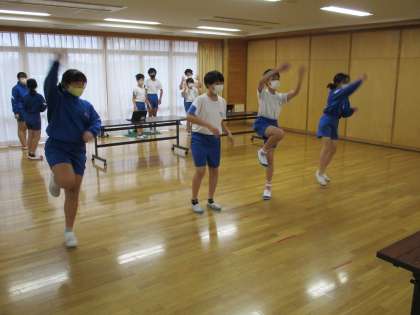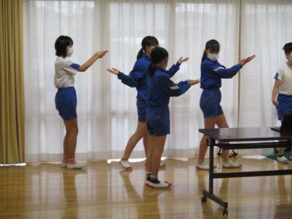 体育科の学習では、ダンスに取り組んでいます。班ごとにダンスする曲を選び、クロムブックを活用して反復練習しています。学級での発表会に向けて、よりよい表現を考えたり友達と教え合ったりしている姿が素敵です。