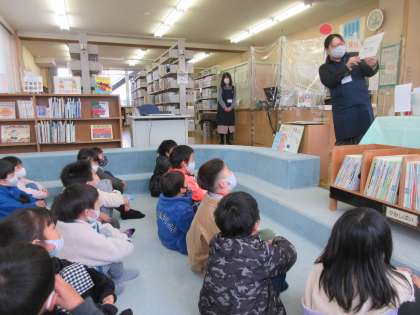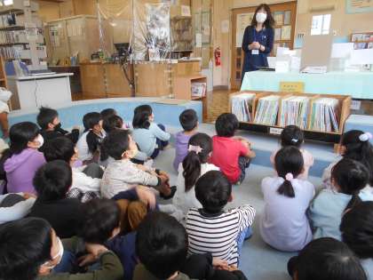 2年生は、富山市立図書館藤ノ木分館を訪問しました。図書館の利用の仕方を説明していただいたり、蔵書が1万2千冊ある本がどのように並んでいるかを見せていただいたりしました。「ぐりとぐら」の本や図書館についてクイズを出していただき、子供たちは本を借りて読みたいという気持ちを高めていました。