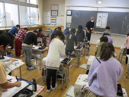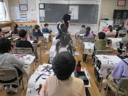 初めての毛筆での書き初め練習が始まりました。半紙での毛筆とは勝手が違い、とまどっていた子供たちですが、2、3回と練習を繰り返すうちに、文字の大きさや形に目を向けることができるようになってきました。冬休み中も、たくさん練習をして、満足のいく作品に仕上げようと気持ちを高めました。