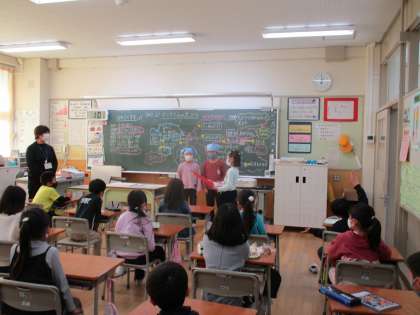 「リコーダーの学習や、総合的な学習での調べ活動がんばってね」「すてきな3年生になってね」など、心を込めて書いたものを、2年生に届けにいきました。緊張しながらも、立派なお兄さん、お姉さんの顔になっていました。