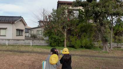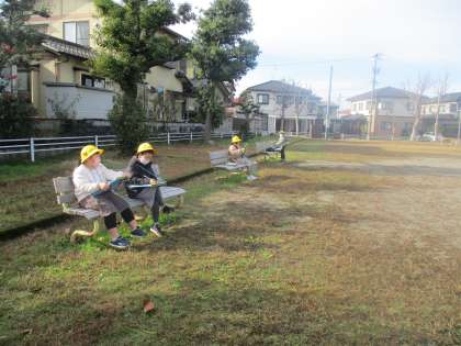 その後、子供たちは近所の公園の様子を観察する中で、木々の葉が落ちてしまったこと、常緑樹の花が今でも見られること等に気付き、自然の様子に関心を示していました。