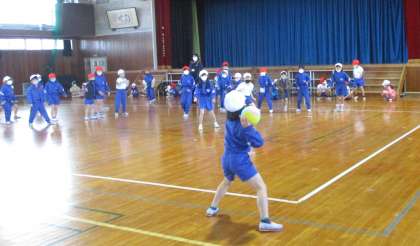 体育科の授業では、ドッジボールをしています。狙ってボールを投げたり、飛んでくるボールを膝をついてキャッチしたりするのが上手になっています。
