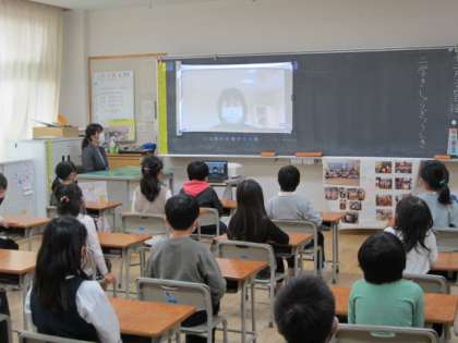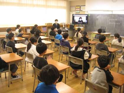 2学期の終業式をリモートで行いました。子供たちは、校長先生の話を姿勢よく静かに聞きました。