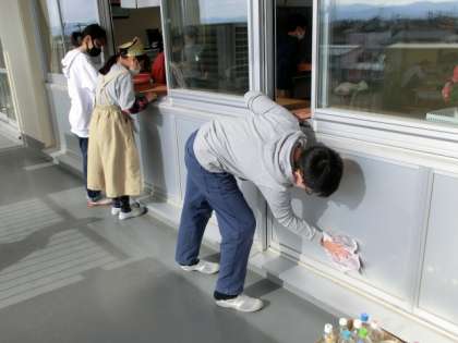 2学期最後は、大掃除で締め括りました。日頃の清掃では取り組めない場所も、心を込めてきれいにしました。