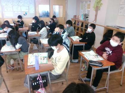 外国語活動では、「get up」「brush my teeth」等の日常生活で使用する英単語を練習しました。