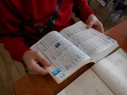 今日は、教科書に載っている「複合語」の意味を、国語辞典を使って調べました。ご家庭でも、分からない言葉は辞書を引いて調べてみるという習慣が身に付くとよいと思います!