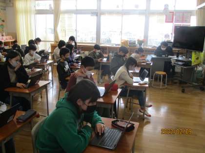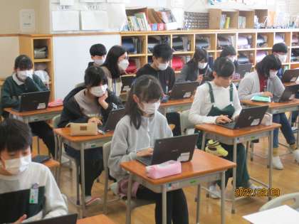 リモートで話したり、共有フォルダでアイディアを交流したりと自席で活動を進めています。1組、2組、3組の様子です。
