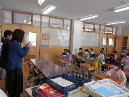 2月17日、18日に市立図書館藤ノ木分館の司書の方々による絵本の読みきかせ会がありました。物語本から図鑑まで、おもしろい本をたくさん読んでくださったり、紹介してくださったりしました。子供たちは、とても興味深そうな様子で、お話を聞いていました。