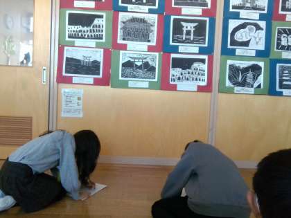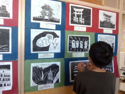 友達の作品を見て、素敵なところを見つけました。ワークシートに記入して、クラスの仲間と話し合いました。