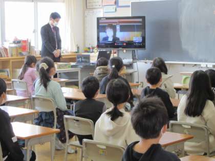 修了式後、生徒指導主事が春休みの過ごし方についての話をしました。その後、教頭がコロナ対策について話をしました。子供たちは、真剣に話を聞いていました。