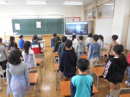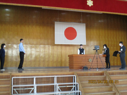令和4年度の始業式も、リモートで行いました。無担任は画面越しに、担任は直接、子供たちとの出会いを果たしました。