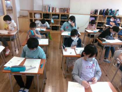 今日は、算数科と社会科の学力調査でした。これまでに学んだことを思い出して、一生懸命に問題に取り組んでいました。