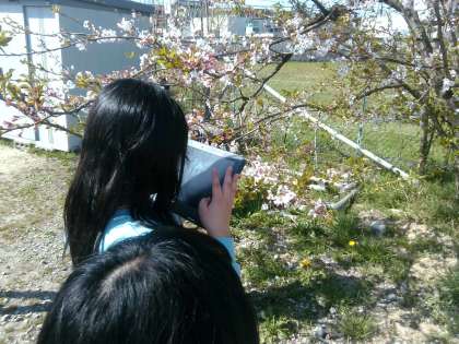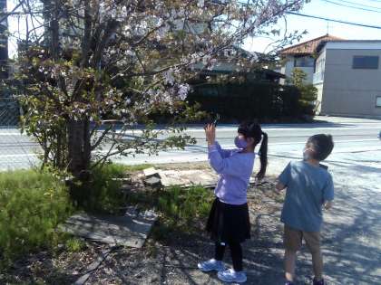 春の植物の様子をクロムブックを使って写真に記録しました。今後は、観察して気付いたことや考えたことを話し合っていく予定です。