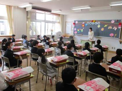 入学式の後、担任の先生と教室に入りました。子供たちは、きらきらの瞳で先生の顔を見ながら話を聞き、新しい担任の先生の名前をしっかり覚えて帰りました。今後の学校生活が楽しみです。